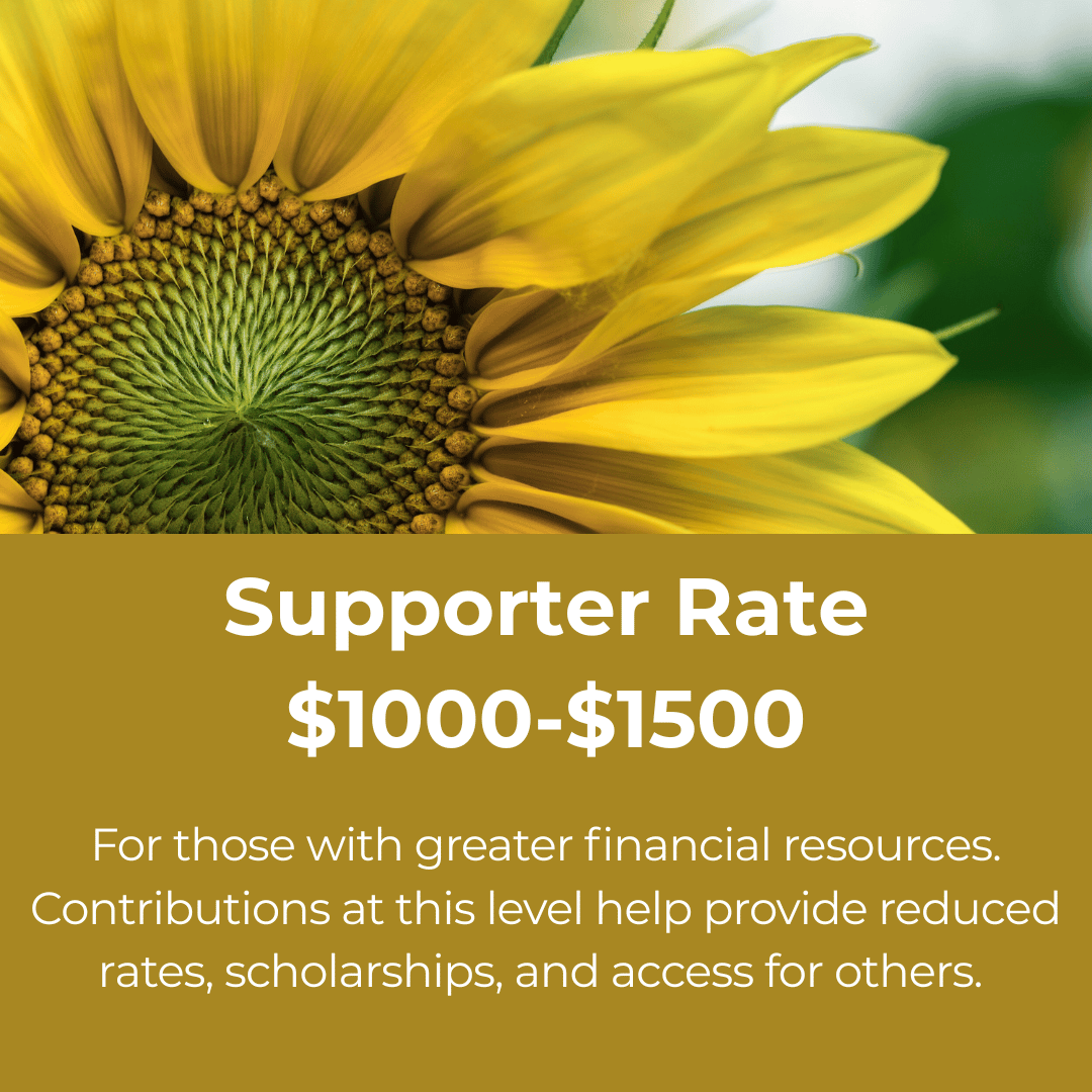 We wish to support all people who are passionate about this work to train with us, independent of their current access to financial resources. We recognize that, because of various social and economic systems, some people experience financial barriers to participating in events with cost-based attendance.