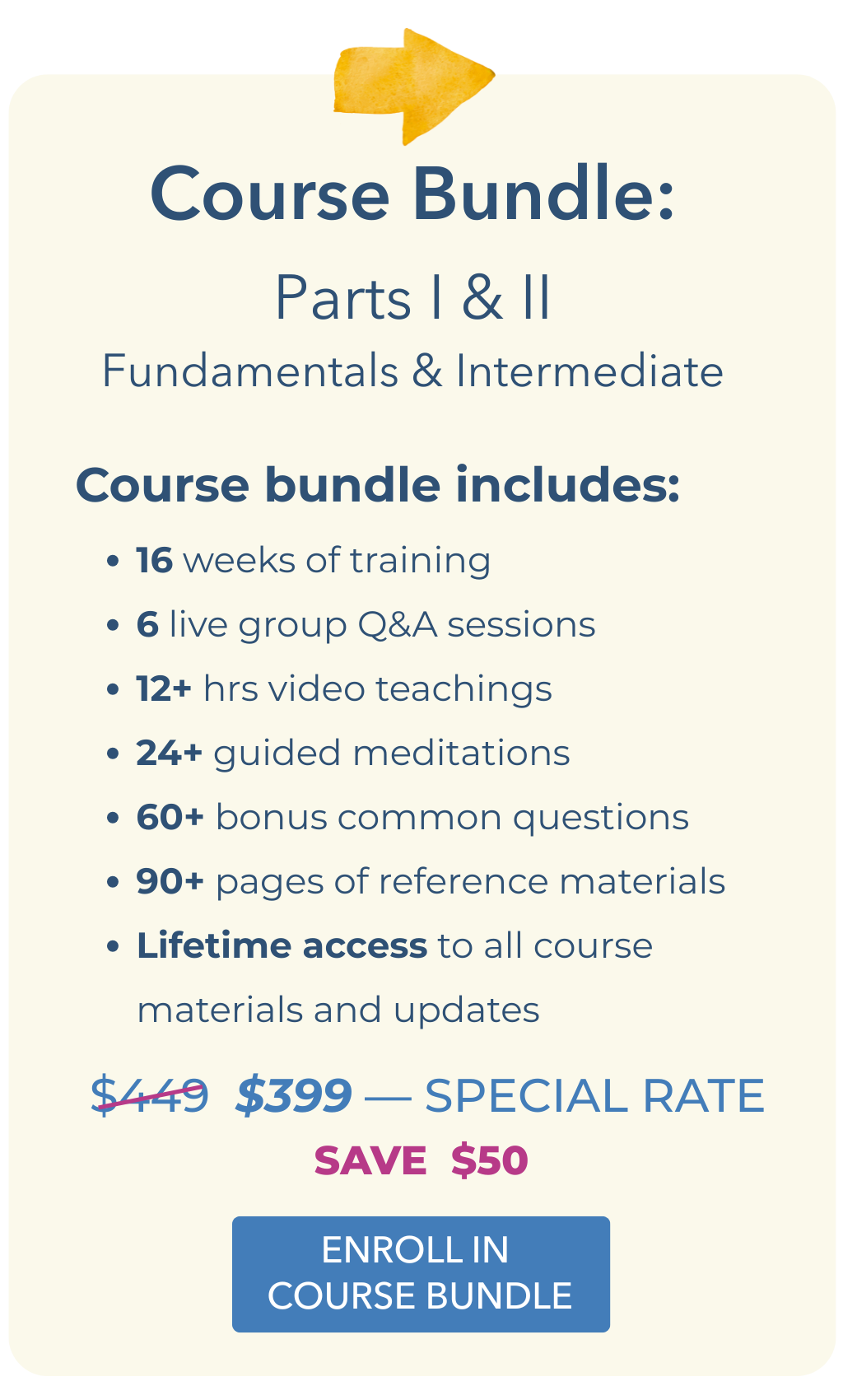 We suggest allotting a minimum of 2-3 hours per week to watch the course videos and complete the readings. For those interested in diving deeper (or who are repeating the course), we offer up to three more hours of additional material in each week. This includes journaling assignments, guided meditations, individual and partner practices, as well as bonus material (responses to common questions and additional resources).